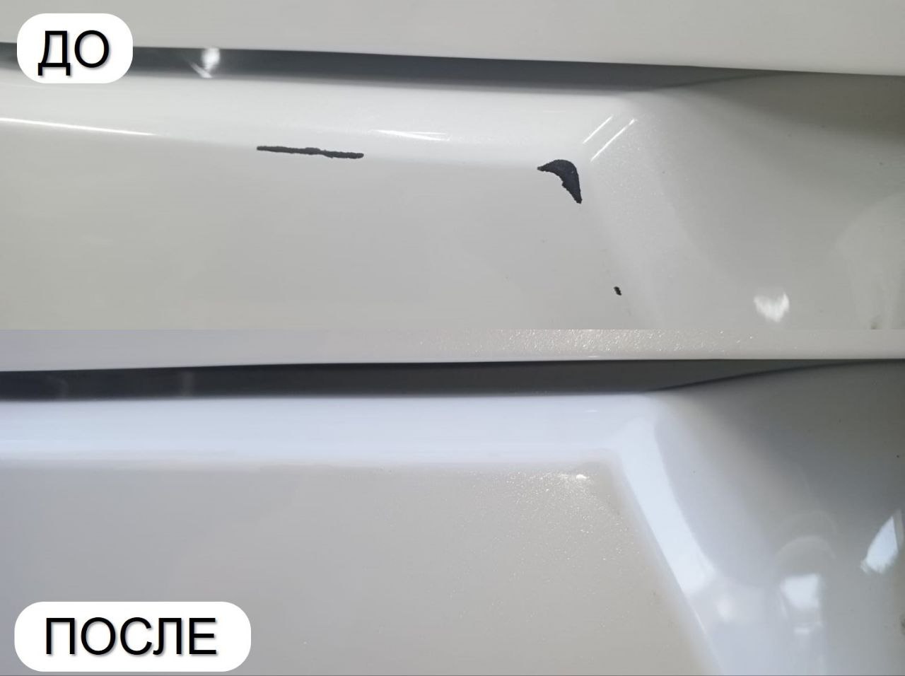 Восстановление геометрии детали (например, стертое ребро). Полное удаление пескоструя, сколов с капота. Полный детейлинг автомобиля от дефектов.
