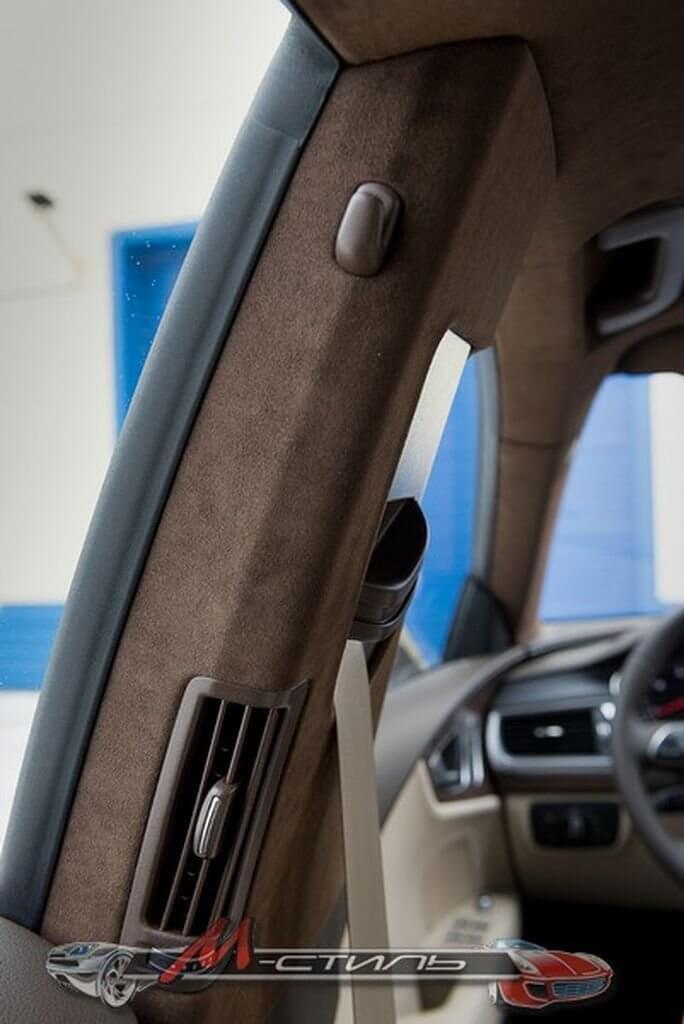 Перетяжка потолка и стоек материалом ALCANTARA.