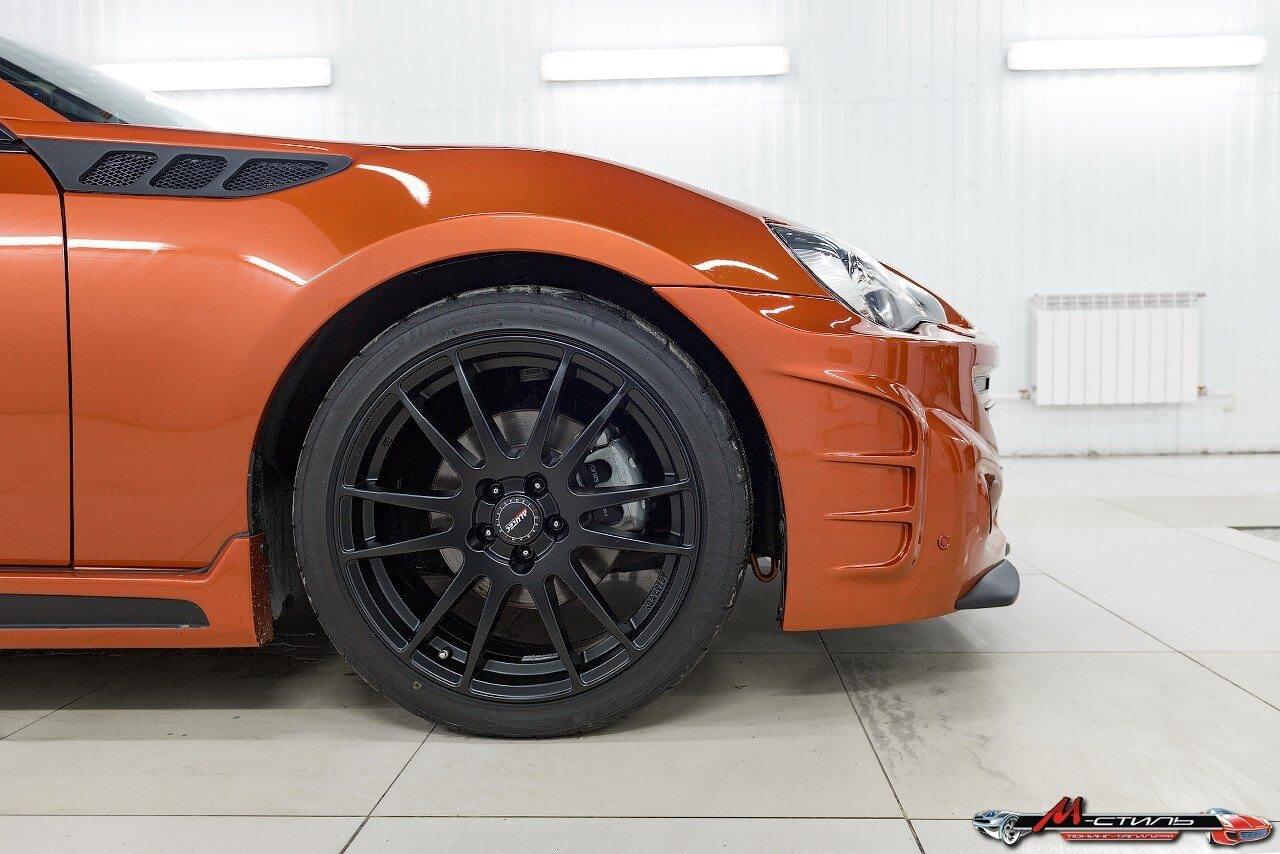 Полностью «с нуля» изготовлен аэродинамический обвес. Установлена мощная аудиосистема на компонентах PIONEER и IMPACT. Весь салон перешит в кожу и алькантару.